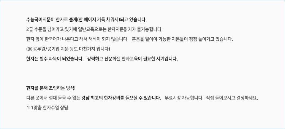 한자교육의필요성 교육안내 대치동한자수업 특강샘플보기 한자교재 부수마스터특강 상담및문의